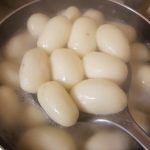 - Đun sôi khoảng 1 lít nước, thả lần lượt từng cục bánh vào. Khi nào bánh nổi lên hết ta đợi thêm 2 phút nữa cho chín hẳn rồi dùng chao hớt bánh sang một nồi khác