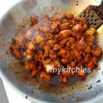 - Đảo cho đến khi thịt săn lại và ngấm. Nếu thịt nhiều quá chảo nóng chậm thì đậy vung 1 lúc thịt sẽ chín nhanh hơn. Lâu lâu đảo đều. Nói chung như xào thịt bình thường ấy mà 🙂