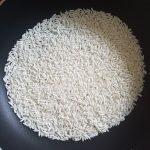 - Cho gạo nếp vào chảo và rang tới khi gạo nếp có màu vàng nâu, giòn dễ vỡ
