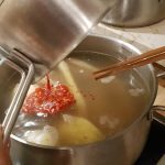 Nêm nếm lại với muối và đường cho hợp khẩu vị, có thể thêm dứa để điều chỉnh độ chua ngọt. Nước dùng không nên chua hẳn như nấu bún mà vị phải hơi thanh thanh chứ không mặn một chiều (khó miêu tả qúa ^^) - Cho dầu ăn vào chảo con, đợi dầu nóng thì cho bột điều màu và sả băm vào phi tầm vài phút rồi trút chảo dầu vào nước dùng. Riêng phi với hạt điều màu thì vớt hạt ra nhé. Hạt điều màu tên là annatto, các bạn có thể tìm mua ở chợ châu Á hoặc amazon, ebay…vì một số quốc gia cũng sử dụng nó làm màu thực phẩm tự nhiên 🙂