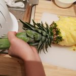 - 1/2 quả dứa cỡ vừa. Tùy độ chua ngọt mà ta điều chỉnh, ví dụ dứa chua thì cho ít còn ngọt vừa thì khoảng nửa quả. Dứa giúp cho nước lèo có vị hơi chua ngọt thanh thanh dễ chịu mà không cần phải nêm mỳ chính hay nhiều đường. (Tùy chọn)