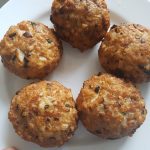 - Chia thịt thành 4 hoặc 5 phần rồi vo viên. Cách vo tròn cho bạn nào chưa biết: tưởng tượng cục thịt là cái bánh bao nóng hổi rất khó cầm, bạn phải vừa nặn vừa xoay vừa tung hứng nhẹ từ tay này sang tay kia thì cục thịt không bị chịu áp lực từ bàn tay và sẽ trở nên tròn trịa. Mình được 5 viên mỗi viên to cỡ quả táo tây nhỏ nhỏ.