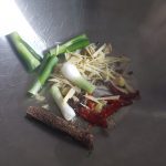 - Chuẩn bị gia vị nấu riêng vào một cái bát: gừng thái chỉ, thân hành thái khúc, hồi, quế, ớt quả, tiêu Xuyên (tùy chọn).