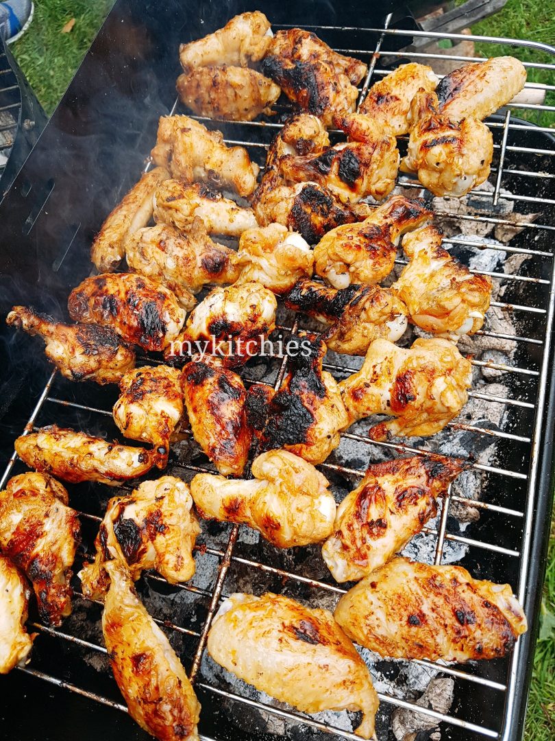 Món này cần có rượu thì sẽ khử được tốt mùi hôi của thịt, và dậy mùi thơm. Mình đã ướp với cánh gà, cánh gà sau khi nướng da phồng giòn, khô ráo và bên trong gần như không có mùi hôi của gà nữa.
