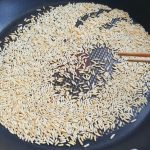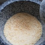 - Cách làm thính gạo nếp: rang gạo nếp tới khi có màu vàng nâu và giòn dễ vỡ, sau đó đem giã cối hoặc dùng máy xay nhuyễn (không được để hạt quá to cũng không nên quá mịn như thính gạo kiểu Vn). Mình thường làm nhiều rồi đóng hộp ăn dần. Nếu không có cối hay máy xay các bạn chịu khó cho vào túi ziplock rồi cán bằng chai bia. Thính gạo nếp giúp cho các món om và nước chấm có độ quánh sệt và mùi thơm bùi. Riêng đồ om kiểu Lào thường có thính gạo nếp và mắm nêm Padek đi cùng tạo nên hương vị đặc trưng của ẩm thực Lào.