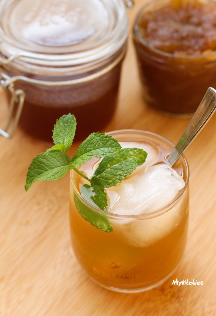 - Khi uống thì pha loãng với nước lọc, cho ít đá, lá bạc hà (mình hay cho), ít giọt cốt chanh. Thành phẩm ngọt chua thanh thanh và thơm mùi bạc hà 😀